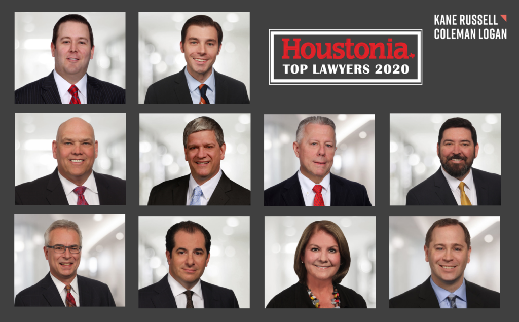 Ten attorneys from the Houston office of Kane Russell Coleman Logan PC have been recognized as Top Lawyers by Houstonia magazine.